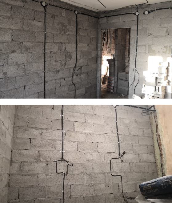 - Электромонтажные работы (розетки, выключатели, освещение)