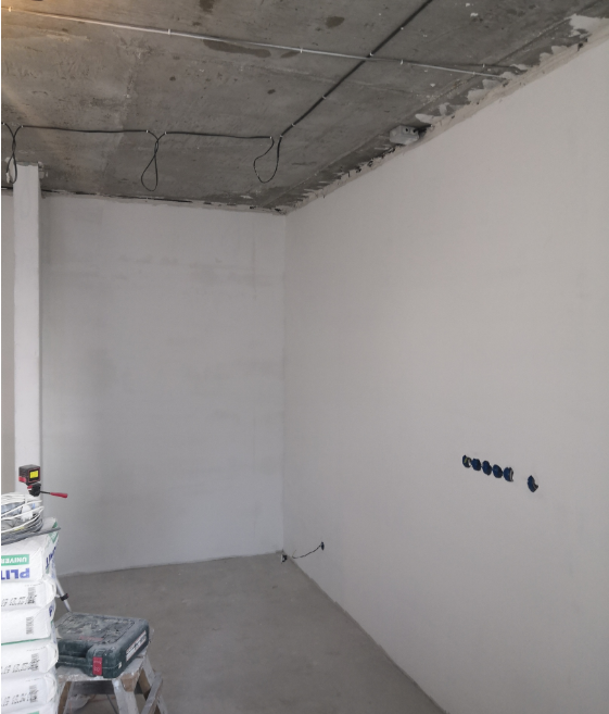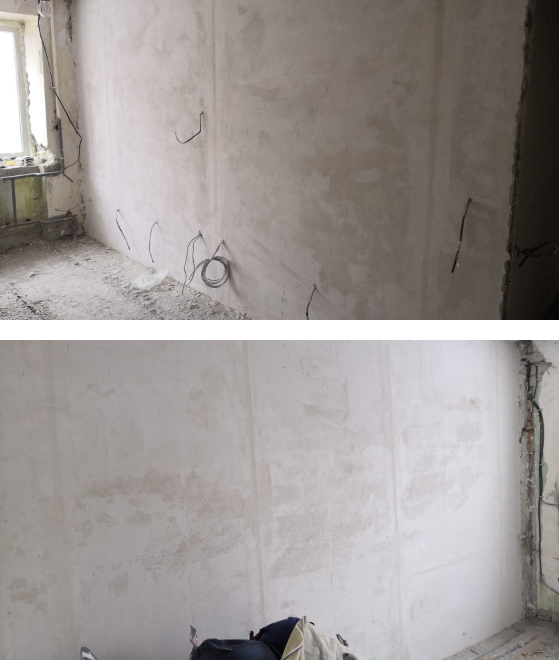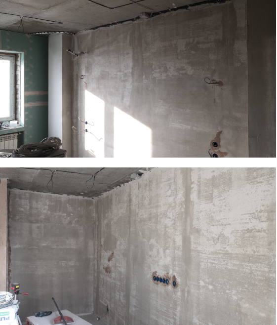 - Штукатурка стен под маяк с выведением геометрии комнат
